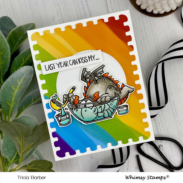 Hey there! I hope you had a wonderful weekend. I am sharing a card that I made with the new Dragon New Year stamp set from the Whimsy Stamps November release. This stamp is so cute! I stamped it out and colored with my Copics. I loved creating the effect of the dragon in the punch bowl!